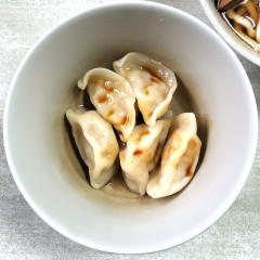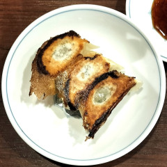 泡盛を頼み、お約束のゴーヤチャンプルーやあおさのだし巻きなんかを頼んだ後、アグー豚を使っていると思われる、アグー焼き餃子690円を注文します。ま、お値段は観光地価格ですね💦