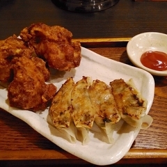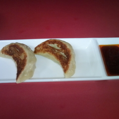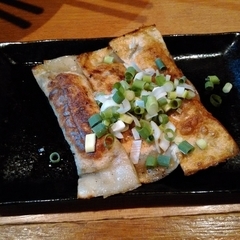 チーズを乗せて表面をバーナーで炙りを入れた焼き餃子。